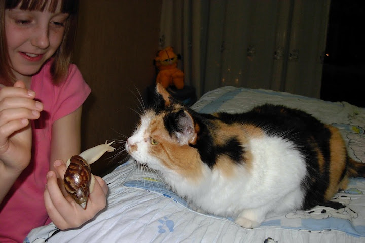 | fuera, У вас очень красивая улиточка,фулика альбино. Скорее всего улитка просто осваивается на новом месте... Quote (fuera) ... а на форуме вроде пишут что будить можно и нужно. Именно так,а то впадет в спячку,ослабнет и все... как грустно не было бы Спячка просто отнимает много сил у улитки,а она только только у вас посилилась.Может у вас лишком холодно или вланость не та для нее? Еще улитки едят и грунт по которому ползают-может это ваш случай? А вы и не замечаете... P.S. По моему альбино вообще более требовательные улитки ,чем просто ахатины.У меня альбино ретикуаты-капризули,то их прям на кальций сажать надо,по другоу не едят и каждый вечер,независимо хватает влажности или нет приходится им хоть крышку опрыскивать-очень любят пить свежую водичку со стен и крышки.А из мисочки не хотят. |