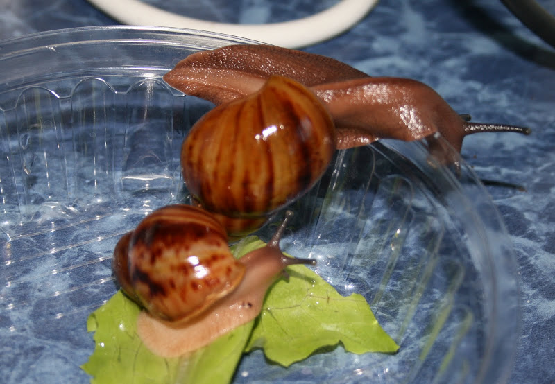 | ОльКа_038, Спасибо огромное))) будем стараться)) Добавлено (02-Сен-10, 1:59 PM) --------------------------------------------- Вчера начала вскрываться кладка фулик альбино (если конечно они получились альбино)))) И вот первый малыш уже не листике салата)))  Добавлено (02-Сен-10, 8:21 PM) --------------------------------------------- Вот еще первые улитенки))))  Добавлено (03-Сен-10, 8:30 PM) --------------------------------------------- Сегодня ко мне приехали мои долгожданные и желанные всем моим мозгом)) ПАПИРАШЕЧКИ (Archachatina papyracea) от Ulcha (кладка от 10 августа) Малыши очень миленькие и такие няяяяя По размеру одинаковые, чуть больше 2-х см.  |