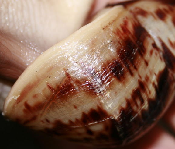 Может и были такие темы, но прошу ответить. Улиточке примерно 3 месяца, размер раковины 7 см. Случилась у нас беда((( Пару недель назад он себя надкусил ( я его сразу намазала вазилином) и после этого пошла полоска. Что я только не делала, ничего не помогает, новый прирост растет с полосой. Тут он себя еще и кусать опять начал. Непонимаю, что я нитак делаю?  |