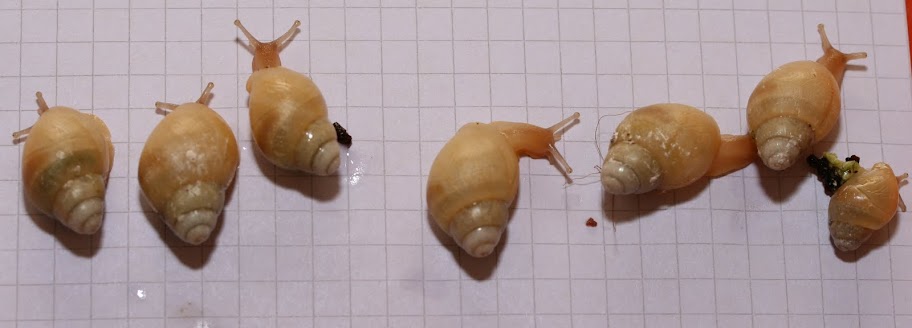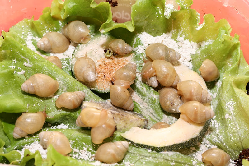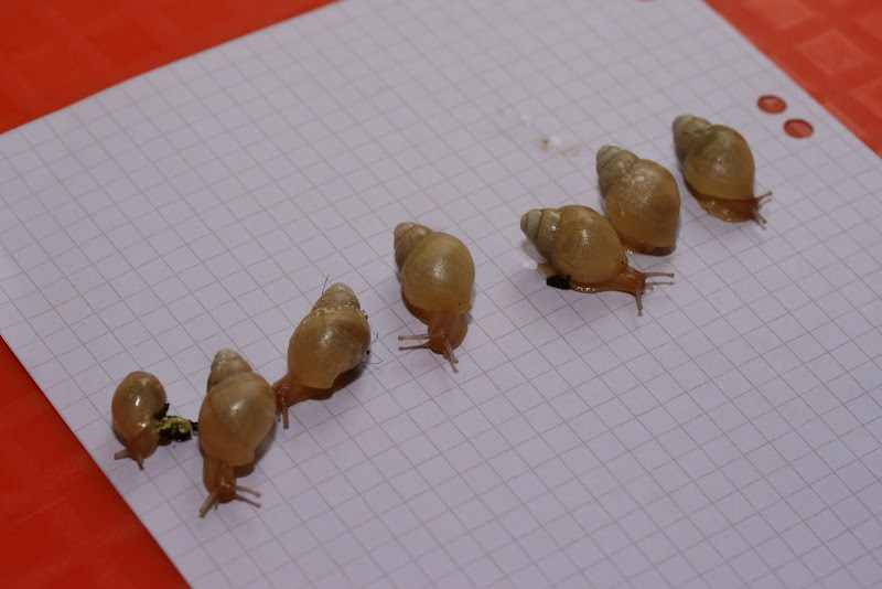 Улиточки потихонечку растут и уже скоро, самые крупненькие, смогут переезжать в новые дома  |